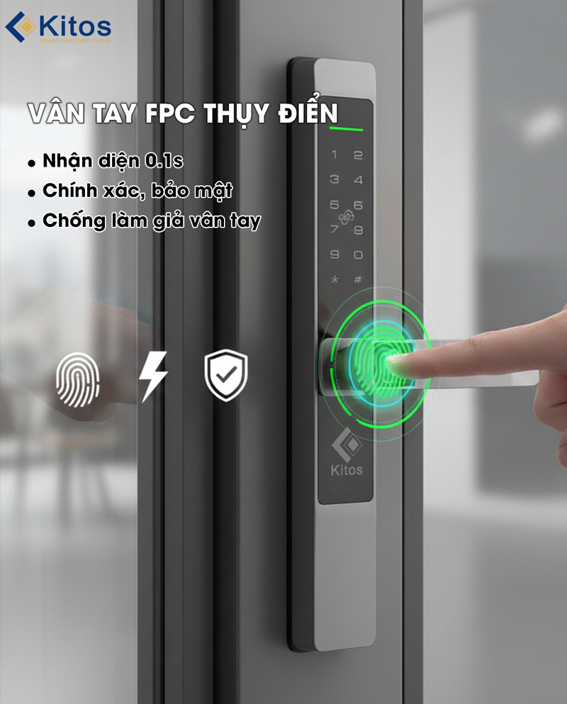 Kitos AD383 Pro sử dụng cảm biến vân tay FPC Thụy Điển, công nghệ sinh trắc học được tin dùng trên các thiết bị cao cấp toàn cầu.