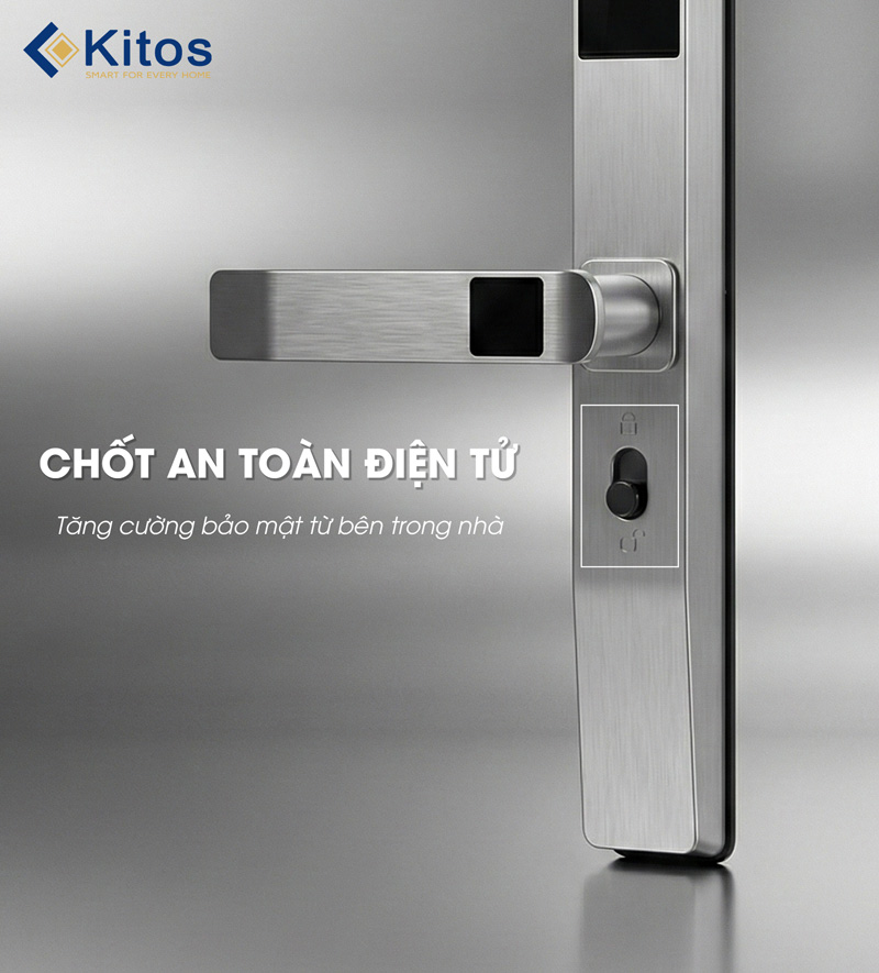 Kitos AD383 Pro được trang bị chốt an toàn điện tử bên trong, giúp ngăn việc mở cửa từ bên ngoài khi người dùng đang ở trong nhà. Đây là lớp bảo vệ bổ sung, mang lại cảm giác an toàn rõ rệt, đặc biệt với gia đình có trẻ nhỏ hoặc người cao tuổi.
