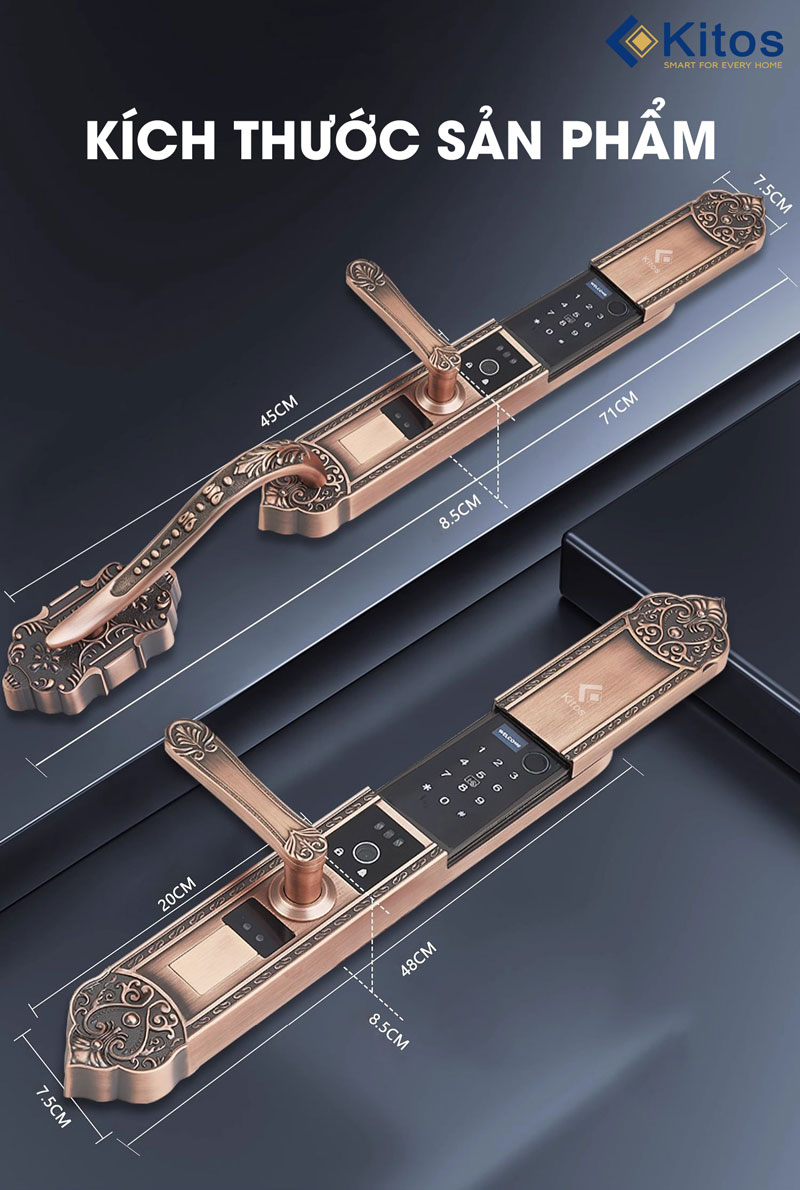 Kitos C600 FACE ID sở hữu thiết kế hoa văn chạm khắc tinh xảo, kết hợp cùng hai gam màu đặc trưng đồng xanh và đồng đỏ, tạo nên sự quyền quý, sang trọng nhưng vẫn hòa hợp với không gian sống hiện đại. Mỗi đường nét trên thân khóa là một chi tiết nghệ thuật, giúp ngôi nhà trở nên nổi bật và đẳng cấp hơn bao giờ hết.