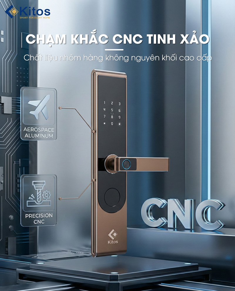 Với chất liệu CNC nhôm hàng không nguyên khối, thiết kế tay gạt sang trọng cùng hệ thống tính năng thông minh toàn diện, Kitos S3 CN không chỉ là một chiếc khóa cửa, mà còn là tuyên ngôn về phong cách sống hiện đại và đẳng cấp cho năm 2026.